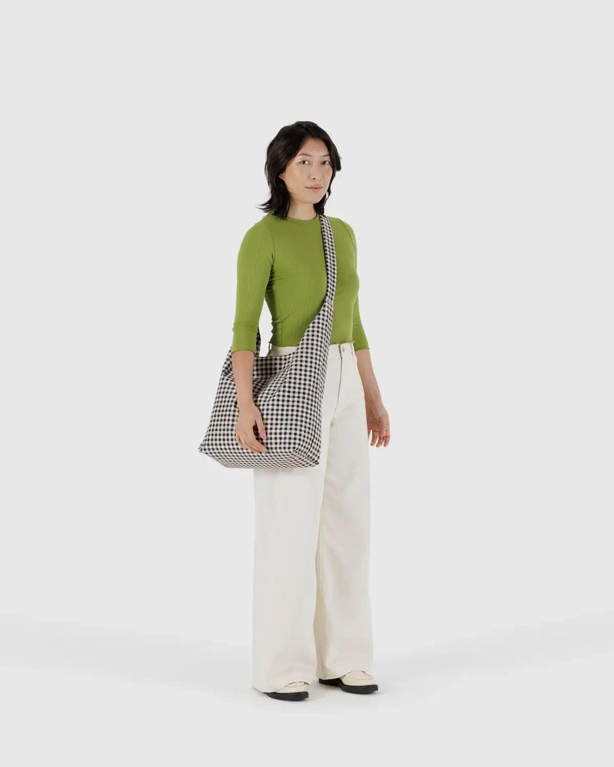 BAGGU LARGE NYLON SLING BAG BLACK & WHITE GINGHAM